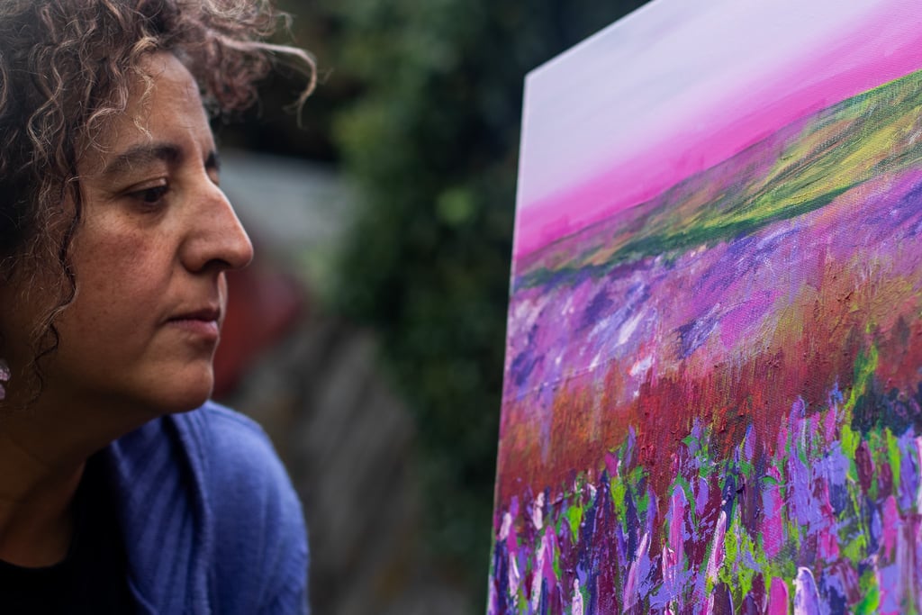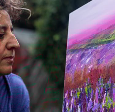 Pintar, para mí, es transmitir emociones y estados del alma a través del color. Me inspiro en la naturaleza —siempre presente— que se transforma en un imaginario simbólico y onírico: formas, trazos y composiciones que surgen de lo real, pero que buscan dar vida a lo invisible, a lo que se sueña, se intuye o se recuerda. Mi obra es un puente entre lo visible y lo interior. Es una invitación a detenerse, a mirar de otro modo, a sentir desde lo más profundo.