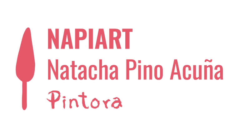 La palabra “Pintora”, escrita a partir del propio trazo de Natacha, introduce la fuerza del gesto y la autoría. Mientras tanto, NAPIART y Natacha Pino Acuña se presentan con claridad y profesionalismo, reflejando equilibrio, estructura y propósito.